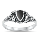 Sterling Silver Drop Black Agate Stone Ring