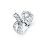 Sterling Silver Fancy Knot Design Inlaid with Bageutte and Round Cut Clear Czs Ring