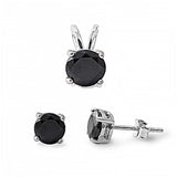 Sterling Silver Round Black Simulated Diamonds Stud Earrings and Pendant Set
