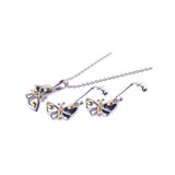 Wholesale Sterling Silver Gold and Rhodium Plated Butterfly CZ Dangling Hook Earring and Necklace Set