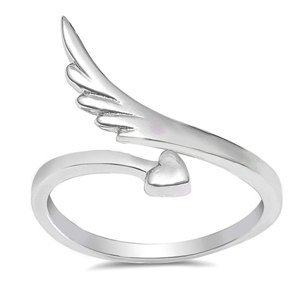 Sterling Silver Heart And Wing Shaped Plain RingsAnd Face Height 12mm