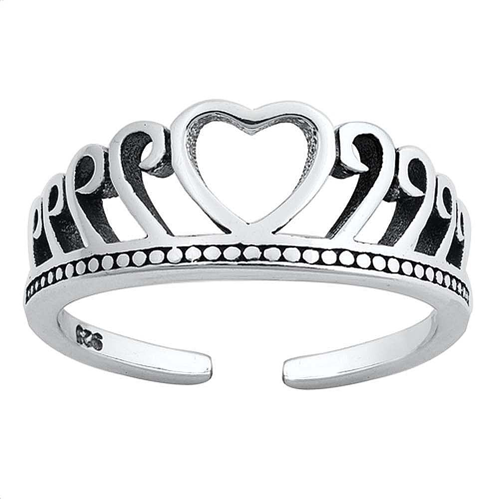 Sterling Silver Heart Crown Toe Ring