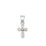 Wholesale Sterling Silver High Polish Cross White Lab Opal Pendant