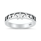 Wholesale Sterling Silver High Polished And Oxidized Moon And Stars Ring Face Height-4.6mm
