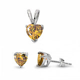 Sterling Silver Luxurious Champagne Heart Simulated Diamond Stud Earrings and Pendant Set