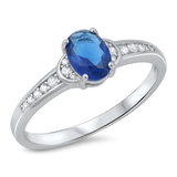 Sterling Silver Oval Blue Sapphire And Clear CZ Ring