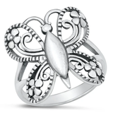 Sterling Silver Oxidized 21.5mm Butterfly Ring