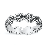Wholesale Sterling Silver Oxidized And Polished 5.7mm Flowers Ring Face Height-5.7mm