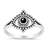 Sterling Silver Oxidized And Polished Black Onyx Evil Eye Ring