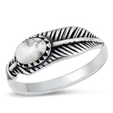 Sterling Silver Oxidized Leaf White Buffalo Turquoise Ring Face Height-6.8mm