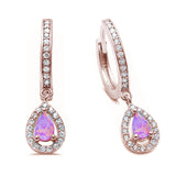 Sterling Silver Pink Opal and Cz Hoop Dangle Rose Gold Plated-Length-7mm
