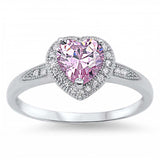 Sterling Silver Trendy Heart Pink Cz with Halo Clear Czs Inlaid RingAnd Face Height of 8MM